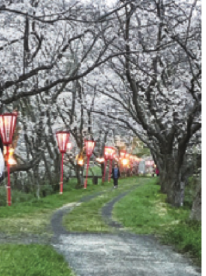 | 伊努谷川の両岸、約300mに植えられた約270本の桜並木。昭和34年に山﨑武一郎氏が、近隣住民に呼びかけ、約30本の桜の苗木を植えたのが始まり。 出雲市の「ふるさと市民賞」や「出雲市文化賞」などを受賞している。 現在は、鳶巣観桜会が管理し、毎年桜まつりも開催している。 |