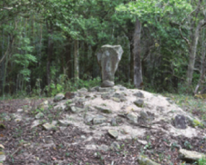 | 萬福寺の裏山、標高30mの丘陵に造られた出雲地方最古の前方後円墳(1号墳)。全長52m、後円部中央部には竪穴式石室があり、鉄製のクワ先と鉄オノが発見されている。 前方部からは碧玉製の勾玉が出土している。 また、隣接して築造されている2号墳は、破壊され墳形は分からないが石棺 式 石室が残っている。 |